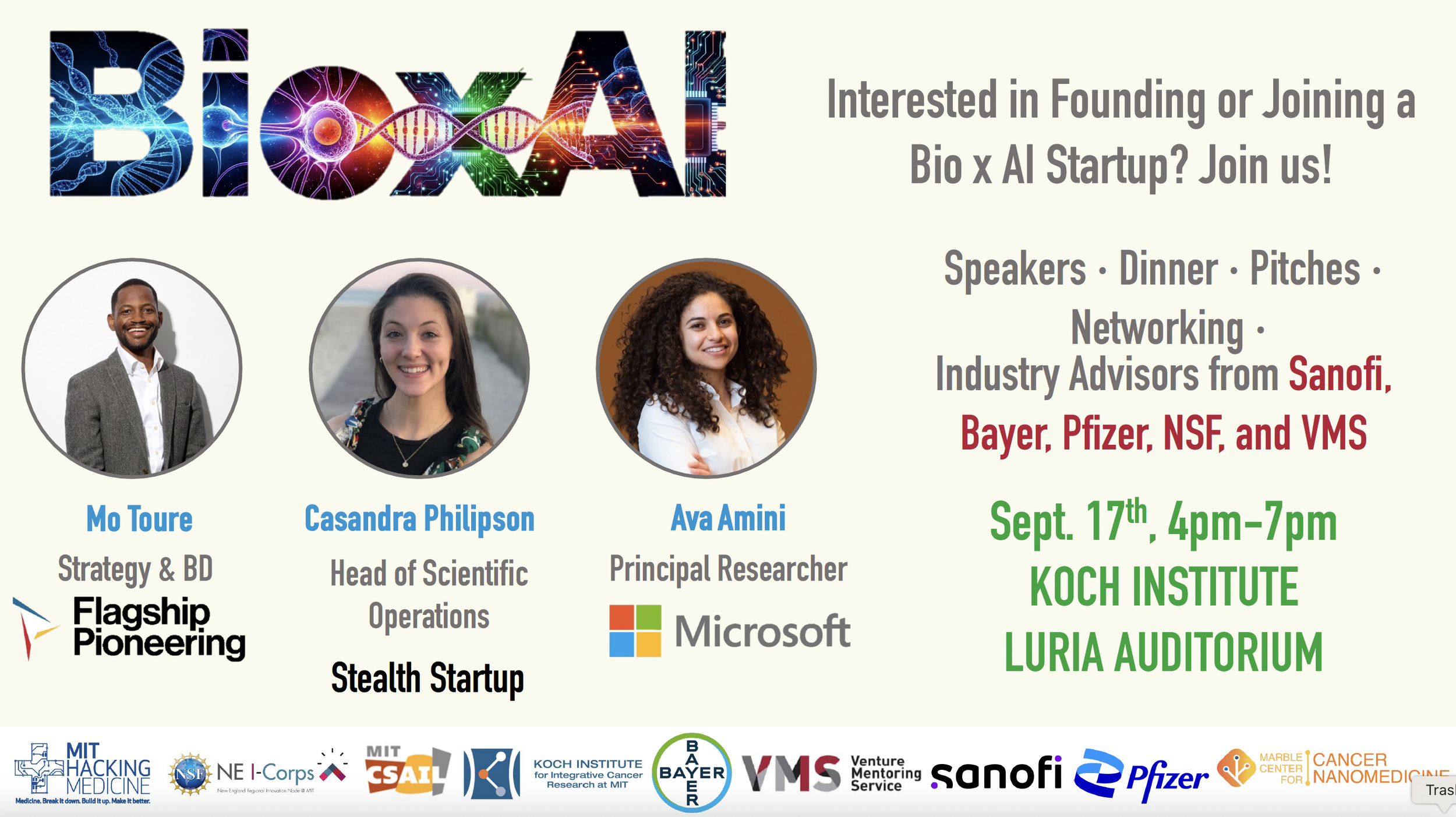 Attendance is limited with a preference for those pitching their BIO x AI ideas, startups, team needs, or themselves.