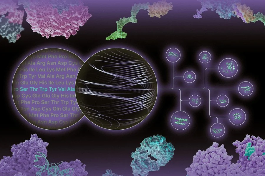 Founded by three MIT alumni, Gensaic is building an AI-powered discovery engine to develop protein shuttles that can deliver therapeutic molecules like RNA to specific tissues and cells in the body. Credits: Image: MIT News; figures courtesy of Gensaic.